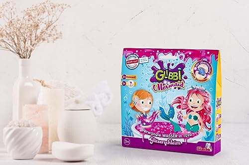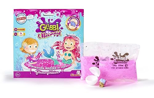 Adesivo glitterato: con Glibbi Sirenetta le ragazze possono trasformare l'acqua del bagno in una splendida colla glitterata rosa. Invece dell'additivo per il bagno, si versa semplicemente la polvere di sirena Glibbi nell'acqua del bagno e in un batter d'occhio il divertimento scintillante può iniziare