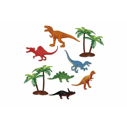 Le dimensioni delle figure e vassoio sono: 4-2 dinosauri da 6 cm, 2 alberi da 7 cm e un vassoio da 50 x 37 cm;