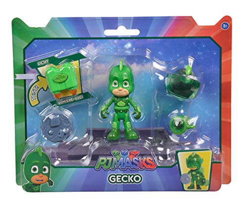 Simba PJ Masks 109402362 - Statuina giocattolo Geco, pigiamino, Action Figure, accessorio con luce, altezza 8 cm, per bambini dai 3 anni in su
