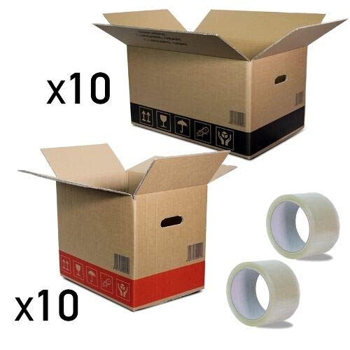 Simba Paper Design Scatole Trasloco monolocale 40mq Scatole di Cartone Doppia Onda: 10 scatole cm. 60x40x35 + 10 scatole cm. 40x30x35 + 2 Nastri Adesivi