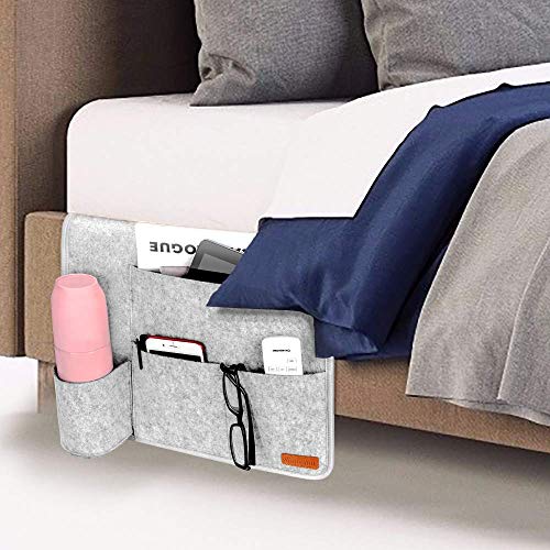 Simboom Portaoggetti Letto Borsa Feltro Comodino per Bottiglie d'acqua, iPad, Tavoletta, Riviste, Telecomando, Cellulare, Occhiali, Grigio