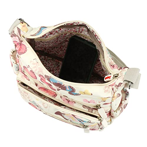 Simcat Borsa a tracolla da donna in nylon con tasche multiple, borsa a tracolla da donna, grande capacità, adatta per donne, mogli, mamma, Farfalla bianca.