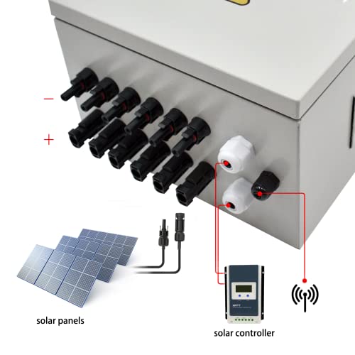 √ 【Dimensioni della scatola del combinatore】: 28 * 25 * 17 cm. Questa scatola del combinatore solare ha una protezione da sovraccarico e sovraccarico. Portafusibile con spia LED che si accende quando il fusibile è bruciato;