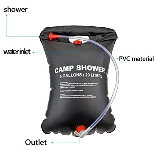 Simoda Borsa per Doccia Borsa Doccia da Campeggio Portatile per Solare Borsa da 5 galloni/20L in PVC Nero Ultraleggero per Campeggio Estivo Escursione all'aperto (#1)