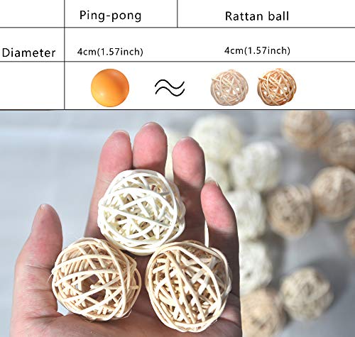 Include 20 palline in rattan di vimini, 10 colori naturali, 10 bianchi, il diametro di ogni palla misura circa 4 cm.