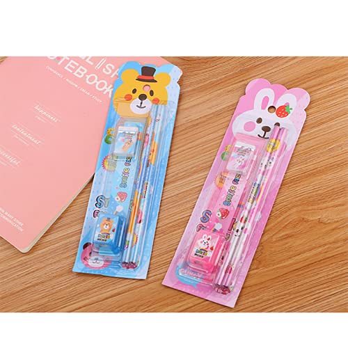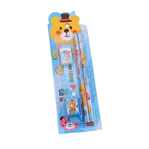 Simpatici kit di cancelleria per bambini, 5 pezzi, set di cancelleria per bambini - Matita, gomma/temperamatite/righello per casa, scuola, ufficio (blu)