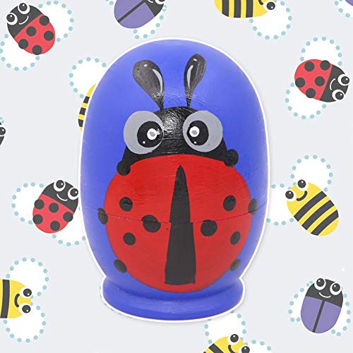 Set di 5 simpatici uova a forma di coccinella tema blu dipinto a mano animale impilabile giocattolo russo a mano nidificazione bambola per bambini giocattolo compleanno