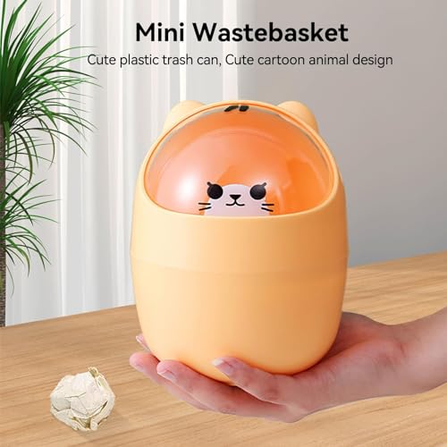 Simpatico mini cestino da scrivania, cestino per la carta straccia a forma di animale di gatto dei cartoni animati con coperchio basculante Mini pattumiera da appoggio Piccolo bidone della(Giallo)
