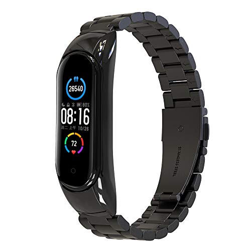 Simpeak Bande in acciaio inossidabile compatibili con Xiaomi Mi Band 5 Smartwatch Braccialetti Sport Band Accessaries Cinghie di ricambio per Mi5 - Nero