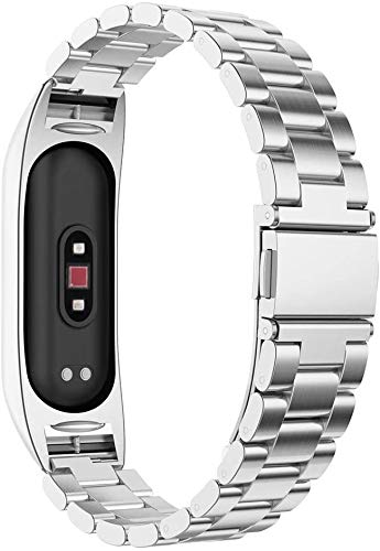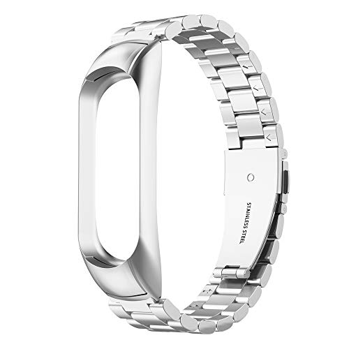 Materiale di alta qualità: questo rende il cinturino inossidabile e resistente all'usura. Rispetto a un braccialetto in pelle, il bracciale in acciaio inossidabile è più traspirante e può aiutare a prevenire allergie (la fascia d'argento non è colorata dalla tecnica galvanica)..Sicuro e facile da usare: il braccialetto miglio mi band 4 è progettato con due chiusure pieghevoli per rendere il bracciale forte e facile da indossare e togliere.