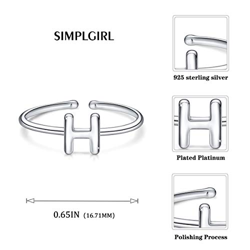 Simpgirl, anello con lettera, in argento Sterling 925, aperto, regolabile, con iniziali dell'alfabeto A-Z, anelli per donne, ragazze e bambini e Argento, regolabile, colore: h, cod. A