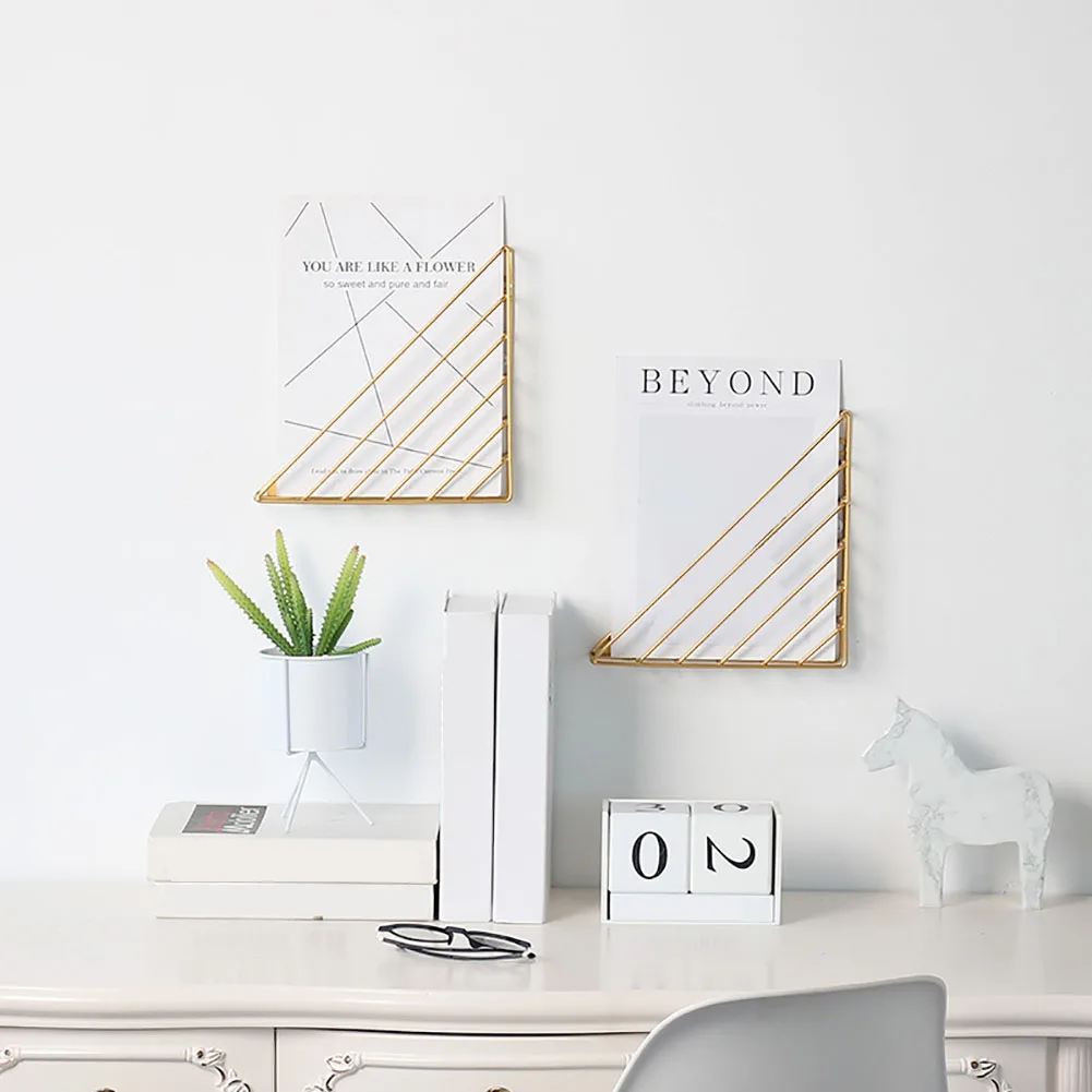 Simple Decorative Home Storage Practical Hanging Study Book Shelf Living Room Magazine Triangle Wall Mounted Iron Structure