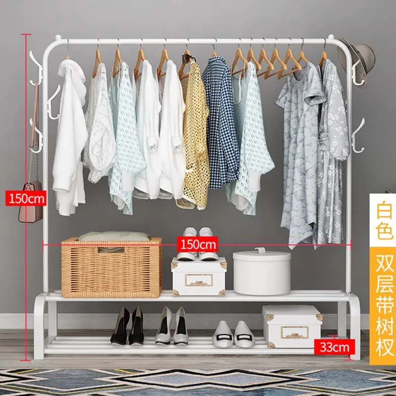 Simple Metal Clothes Rack Floor Double Single Pole Coat Rack Home Bedroom Storage Shelf Balcony Hanger Indoor Mobile Drying Rack
