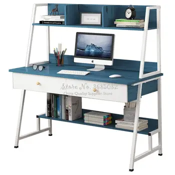Simple Modern Woden Computer Desk Combination Steel Frame Tables Home Bedroom Desks with Bookshelf & Drawer Office Writing Desk