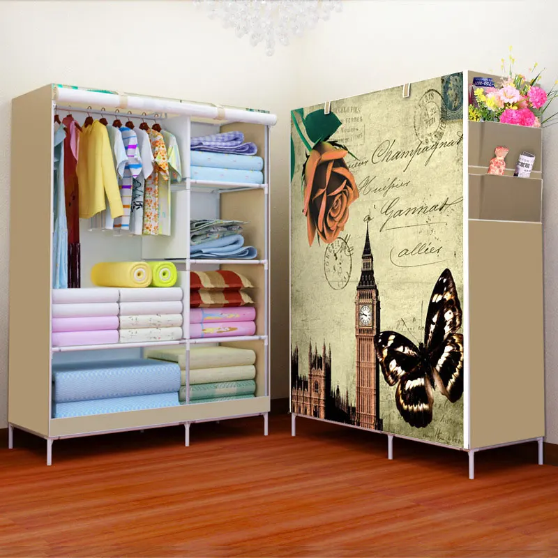 Simple Non-woven Cloth Folding Wardrobe DIY Assembly Bedroom Clothes Storage Cabinet Panoramic Pattern Large Wardrobe Closet