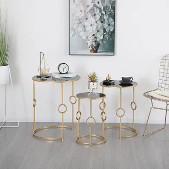 Simple Nordic Metal Coffee Table Living Room Sofa Side Table Creative Small Round Table 3 pieces Combination Glass Table