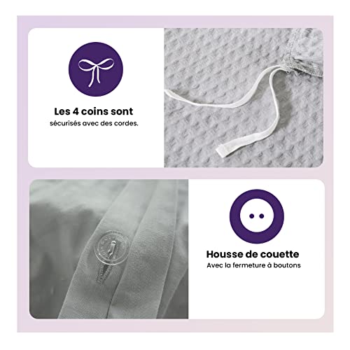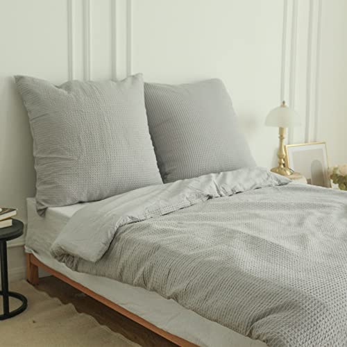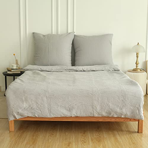 Simple&Opulence Copripiumino Matrimoniale 240x200 cm in Cotone,Set Copripiumino Matrimoniale con Motivo a Waffle con Federe 65x65cm,Grigio