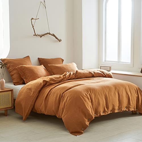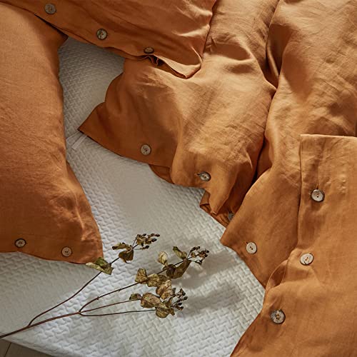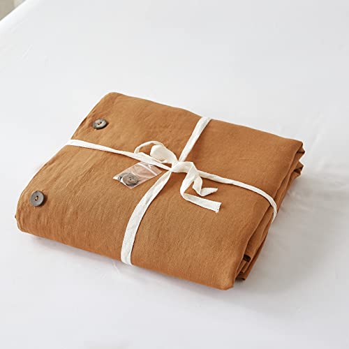 Simple&Opulence Set Copripiumino in Puro Lino,Set Copripiumino e 2 Federe,Traspirante Ipoallergenico,Copripiumini Matrimoniale 260x220cm,Ruggine