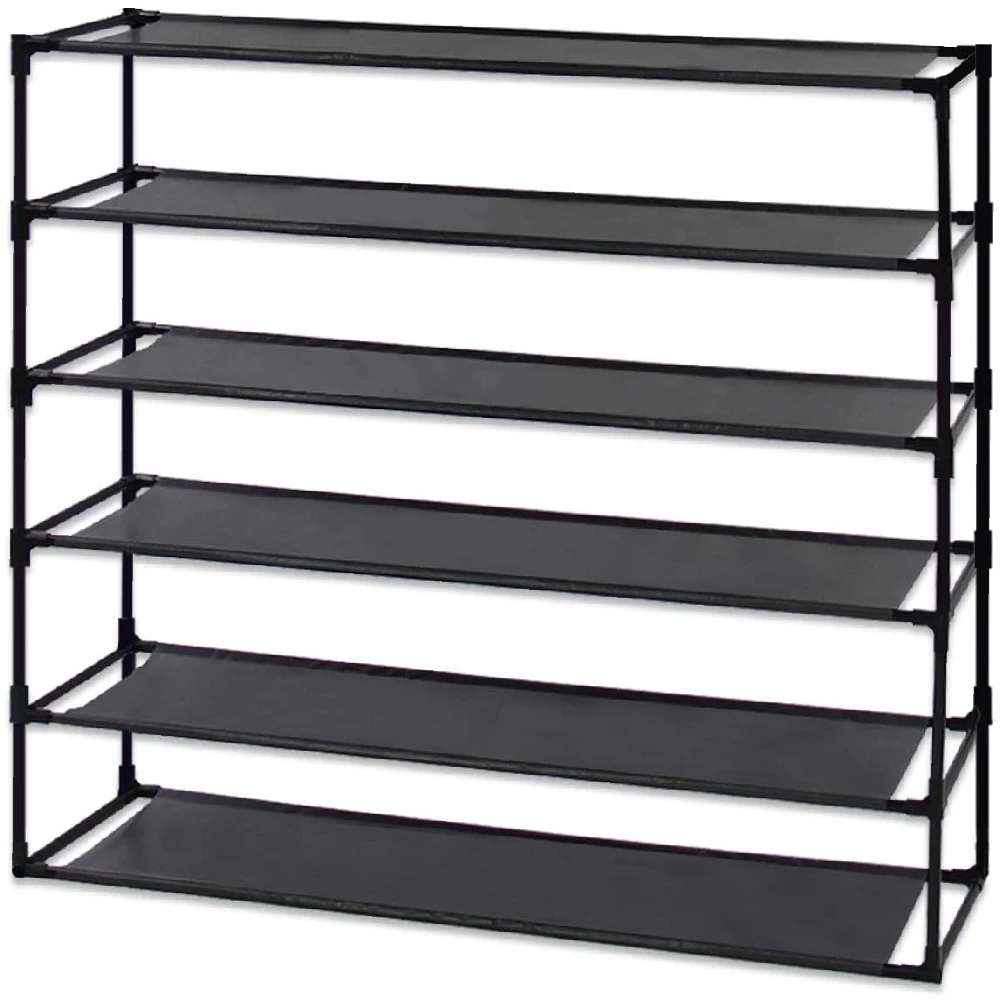 Simple Shoe Rack No Dust 6 Tier Detachable Waterproof Fabric Shoe Organizer Tower Space Saver Stackable Storage Shelf (Black)
