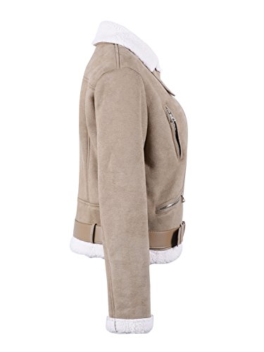 Simplee Abbigliamento Donna Agnello Montone Giacca di camoscio Foderato di Pelliccia Aviatore Cappotto Indumenti Esterni