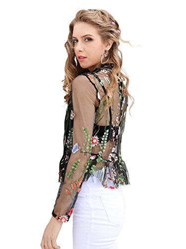 Simplee Apparele Maglie a Maniche Lunghe Floreale sopra Ricamati Maglie Camicetta