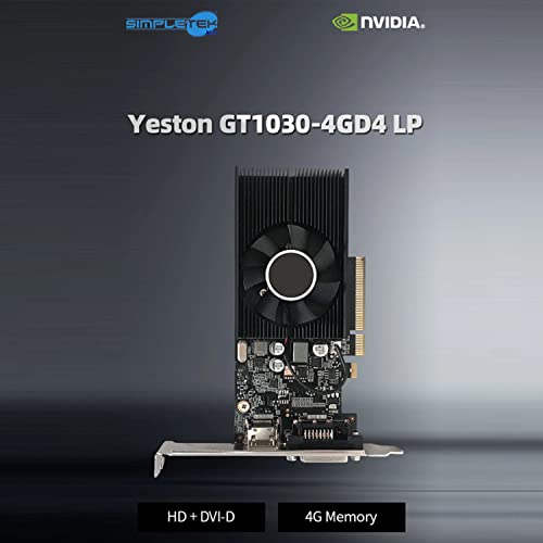 SIMPLETEK | Scheda Video Nvidia GT1030 4GB GDDR4 PCIe X8 Low Profile Doppia Staffa SFF | HDMI + DVI