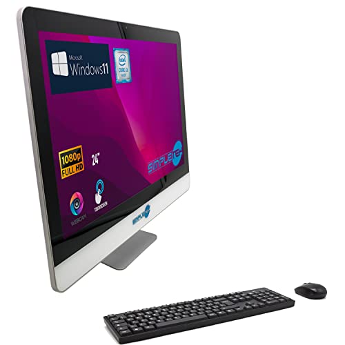 SIMPLETEK All in One Touch Screen Windows 11 Professional | 24” Full HD Core i3 2.40 Ghz | 16GB RAM SSD 240GB | Webcam integrata touchscreen HDMI LAN Wi-Fi Bluetooth USB 3.0 PC Fisso Computer Desktop