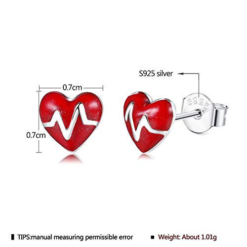 SIMPLGIRL Orecchini a Bottone in Argento Sterling 925 Orecchini in Argento a Cuore Rosso Orecchini a Forma di Cuore Orecchini a Bottone Piccoli Carini per Donne Ragazze Bambini