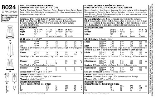 Simplicity 8024A Bambino di Battesimo con Bonnets Sewing Pattern, di Carta