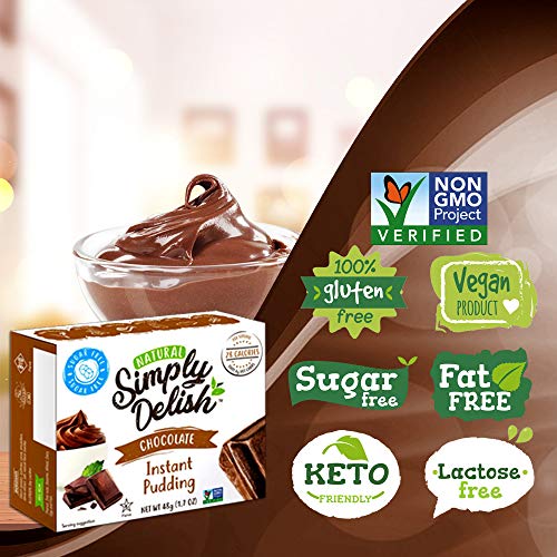 Simply Delish, Natural Pudding, and Pie Filling - Fat and Gluten Free, Vegan Sweet, Chocolate Flavour - Pack of 6, Sugar Free Pudding