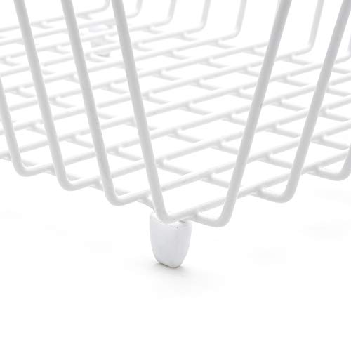 RESISTENTE E DUREVOLE: Robusto cestino in filo d'acciaio rivestito in plastica bianca antiruggine, con piedini in plastica antiscivolo per proteggere da graffi, scheggiature e rigature.