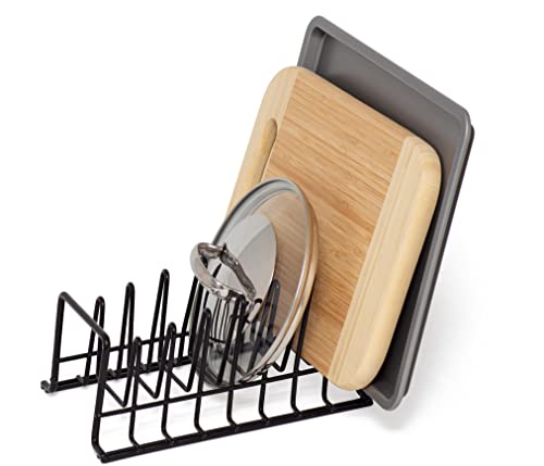 RESISTENTE E DUREVOLE: L'acciaio rivestito in plastica antiruggine offre un supporto verticale efficiente, pratico e robusto per contenere piatti, taglieri, coperchi di pentole o teglie da forno.