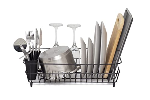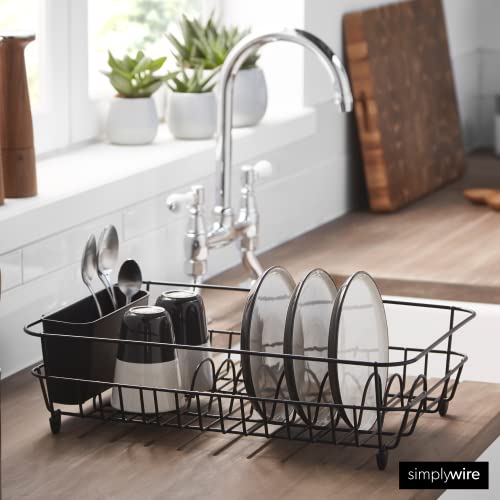 Simplywire - Scolapiatti - Griglia scolapiatti antiruggine - Nero con cestello portaposate nero