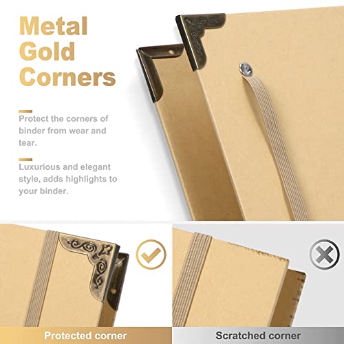 Dimensioni prefette: la nostra cartella per raccoglitore ad anelli A4 è 31,5 x 25 cm. Il raccoglitore a 4 anelli può contenere carta formato Letter/A4, documenti o altri file. Ci sono spazi extra su entrambi i lati per mantenere i file piatti e impedire che la carta venga piegata. Quattro angoli in metallo con motivi retrò lo rendono lussuoso.