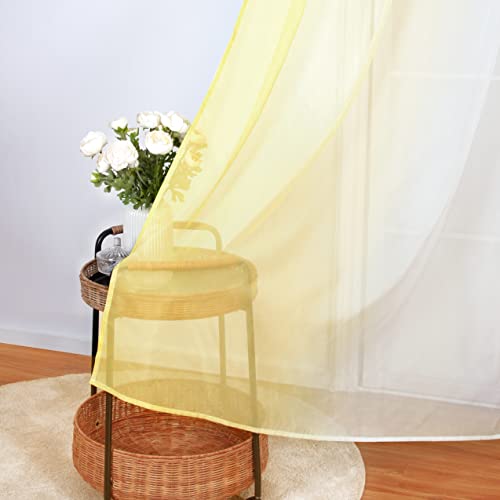 SIMPVALE 2 Pezzi Tende Trasparente - Tenda in Voile di Colore Stile Sfumato per Camera da letto Soggiorno Balcone, Giallo con bianco, 140x145cm