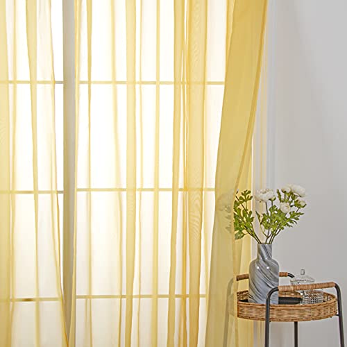 SIMPVALE - Tende a 2 Pannelli in Voile Trasparente con Occhielli, per finestre, Balcone, Soggiorno, Larghezza 140 cm/Altezza 260 cm, Giallo