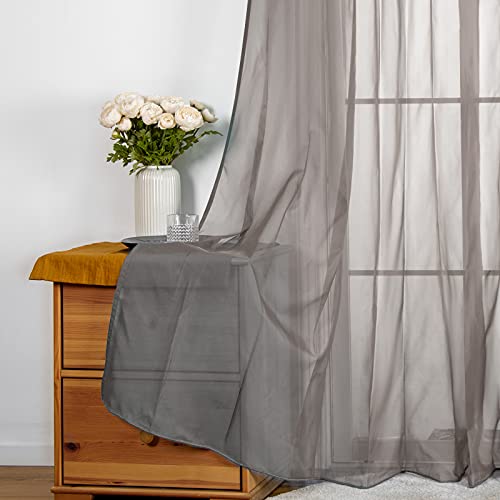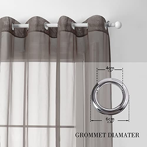 SIMPVALE - Tende a 2 Pannelli in Voile Trasparente con Occhielli, per finestre, Balcone, Soggiorno, Larghezza 140 cm/Altezza 145 cm, Marrone