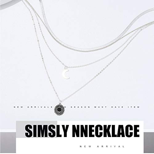 Simsly Boho Collana girocollo in argento rotondo con ciondolo a forma di mezzaluna, regolabile a strati Collana per donne e ragazze