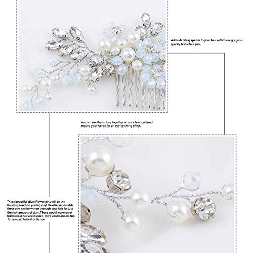 Simsly - Pettine per capelli da sposa, accessorio per capelli da sposa, con cristalli e perle, per spose e damigelle, colore: argento