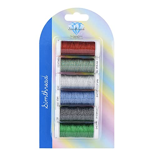 Set di 6 bobbins, 60% poliestere da ricamo + 40% filo metallico, 3 fili