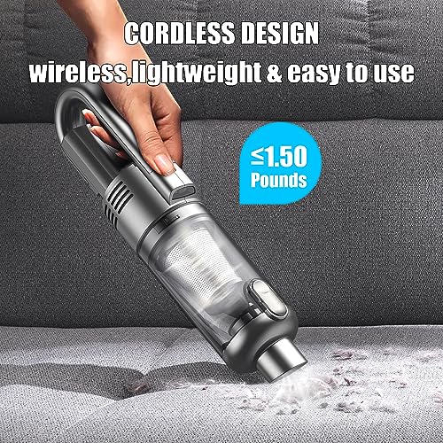 SIMWAL Aspirapolvere portatile, aspirapolvere per auto con potente aspirazione 7500PA cordless, aspirapolvere portatile a mano con luce LED per casa auto (Argento)