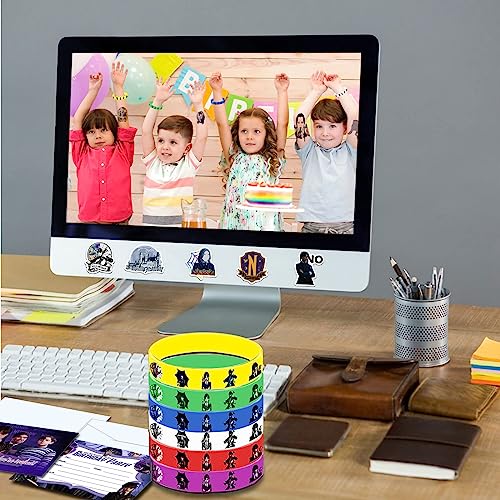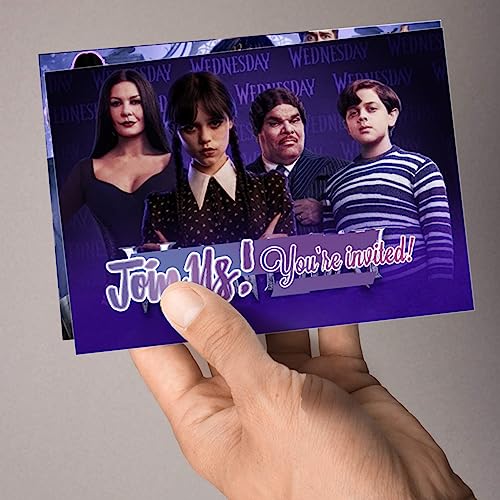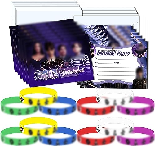 Simyron Wenesday Addas Inviti Compleanno, 12 Pezzi Wedesday Biglietto d'invito Festa, decorazioni compleanno bambini mercoledì braccialetti in silicone