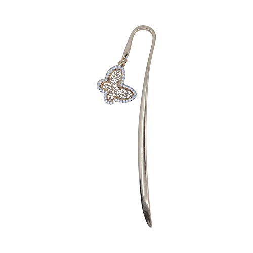 Segnalibro a forma di farfalla, un libro in metallo placcato oro di alta qualità con un ciondolo a forma di farfalla in filigrana tempestato di vere pietre di cristallo.