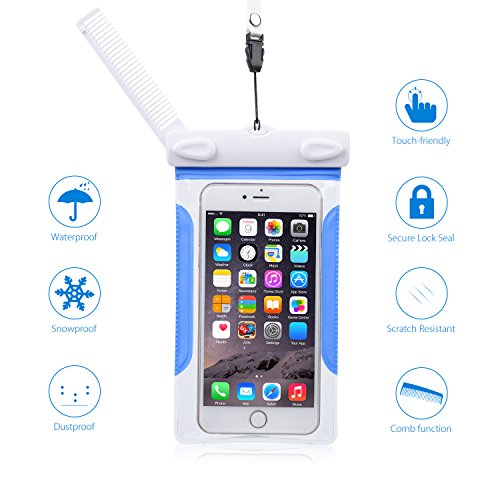 Sincewe Custodia Impermeabile Antiurto Snowproof con Pettine Antipolvere Pouch Bag con [IPX8 Certified], per iPhone 6/6S e altri cellulari di Apple & Android meno di 6 pollici-Blu