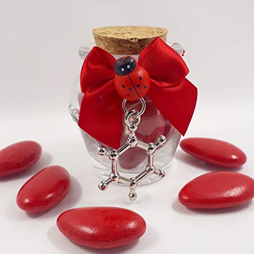 Sindy Bomboniere Vasetto portaconfetti Laurea biologia e Chimica Decorato con Nastro Rosso con Pendente a Forma Molecola (Kit confezionamento)