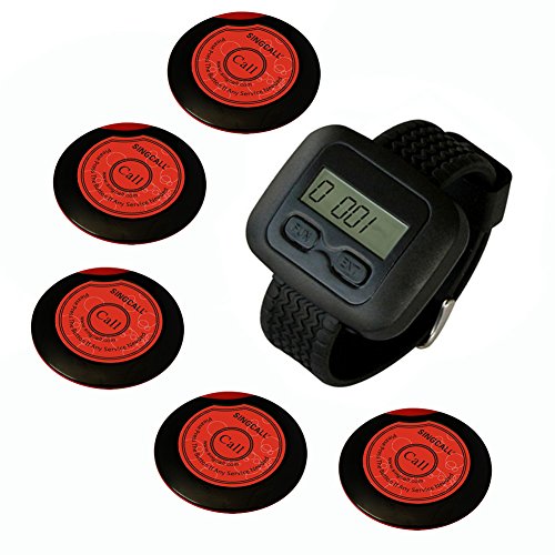 SINGCALL Chiamare cameriere di cliente, cucina, albergo, banca, la merce contiene 1 orologio da polso e 5 cercapersone(APE700)