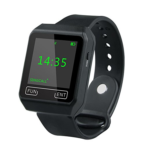 SINGCALL Sistema di chiamare senza filo,Mainframe portatile di tipo orologio polso,Chiamare cameriere,1 orologio da polso(APE6800) e 5 cercapersone