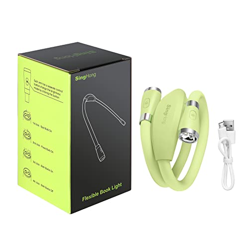 SingHong Lampada da lettura a LED a libro con luce USB ricaricabile, vivavoce, 4 lampadine a LED, 4 luminosità regolabile, per la lettura a letto o la lettura in auto (Verde)