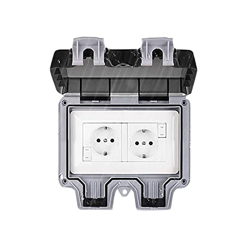 Single/Doppio Presa Impermeabile IP66 con Connettore da Impermeabile e Coperchio Incernierato, Presa Elettrica da Esterno per Bagno, Garage, Piscina e Giardino Con Interruttore Indipendente