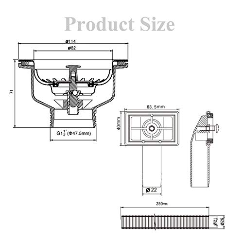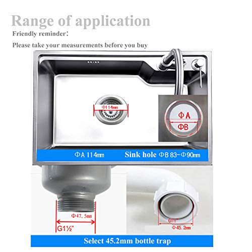 La collezione lavello è perfetta per le dimensioni del lavello di φ114mm. Consigliamo il diametro del foro del lavello di φ 83 - 90 mm. Si prega di assicurarsi che il diametro di questo tappo per lavello e il suo anello in gomma siano uguali a quelli precedenti prima di effettuare l'ordine